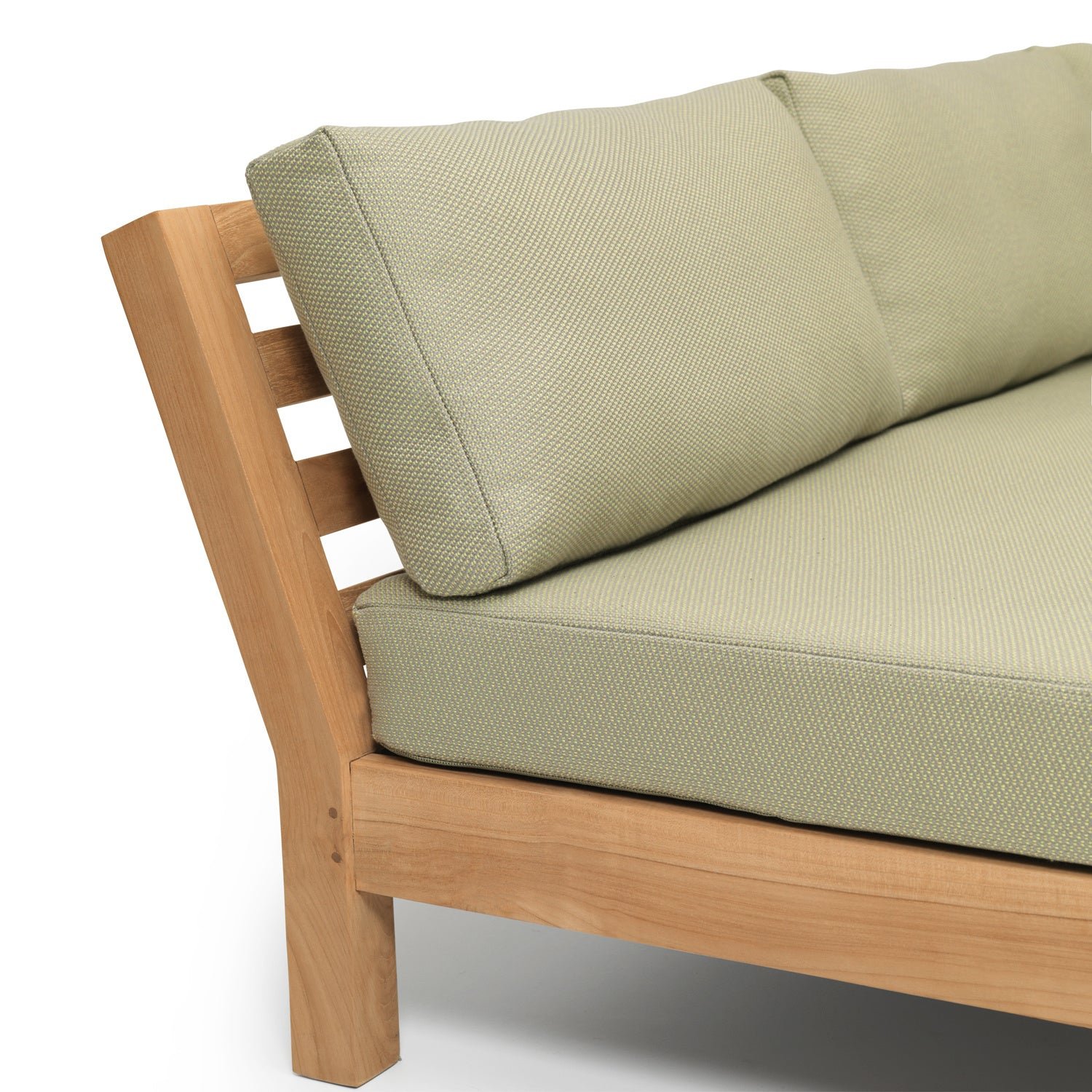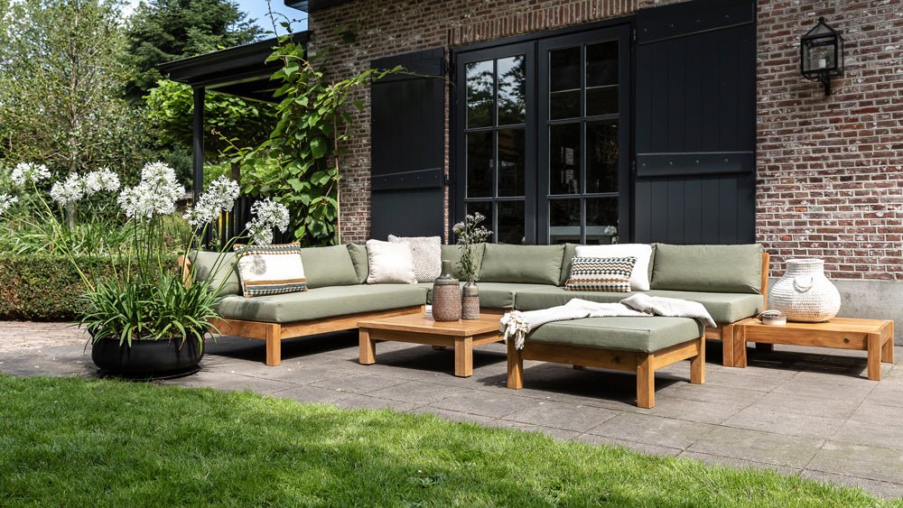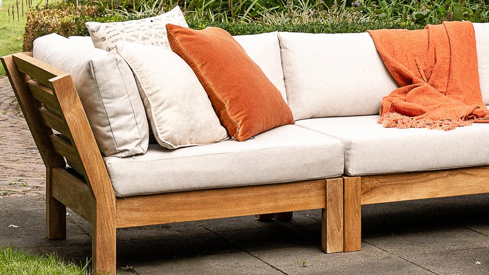 De Coffee Bay serie is modulair, je stelt deze dus helemaal zelf samen. Het frame is gemaakt van a-kwaliteit teakhout en de zitting is van textileen. Dit zit zacht en met dit materiaal drogen de kussens lekker snel.