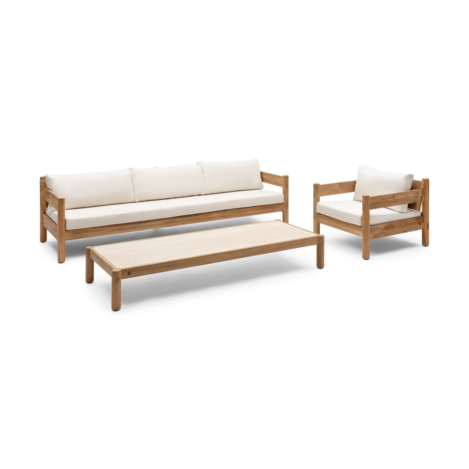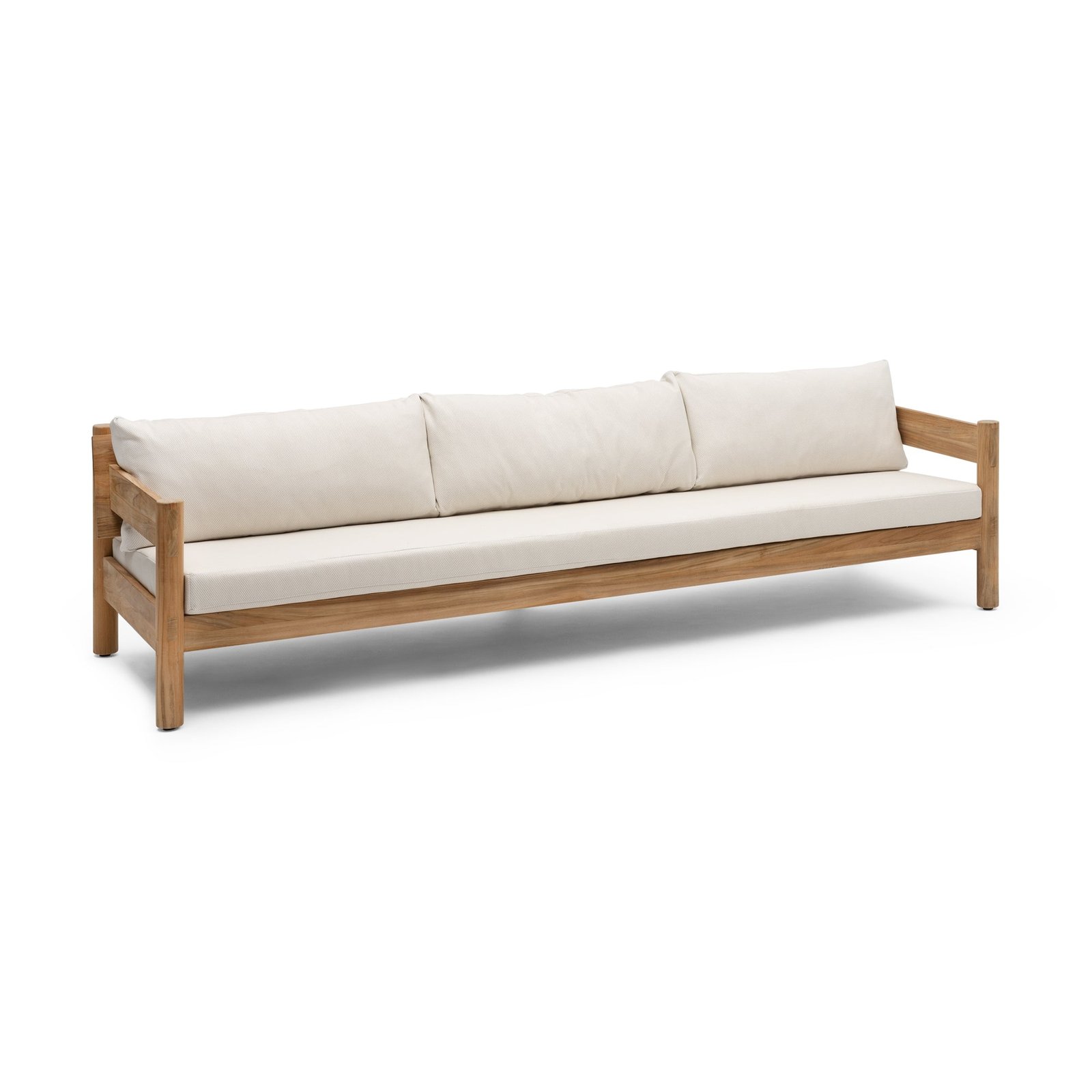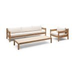 De Piloti 3-zits loungebank is vervaardigd uit hoogwaardig teak, wat niet alleen zorgt voor een luxe uitstraling, maar ook voor duurzaamheid. Teak is bekend om zijn weerstand tegen de elementen, waardoor deze loungebank perfect is voor langdurig gebruik, zowel binnen als buiten.