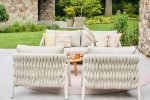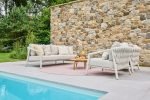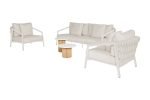 – Alternatieve 5-delige sofa set: met 2 lounge stoelen, een 2.5-zits bank, en twee Ronda tafels (45×42 en 80×22), beide met teak frame en composiet top.
